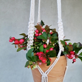 Do závěsu se můžou dát rostliny v květináči, ale také vázy s řezanými květinami a podobně. Závěs najde využití uvnitř i venku.