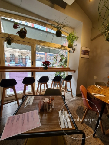 Po obnově opět září svěžestí a dodávají interiéru bistra útulnou a přirozenou atmosféru.